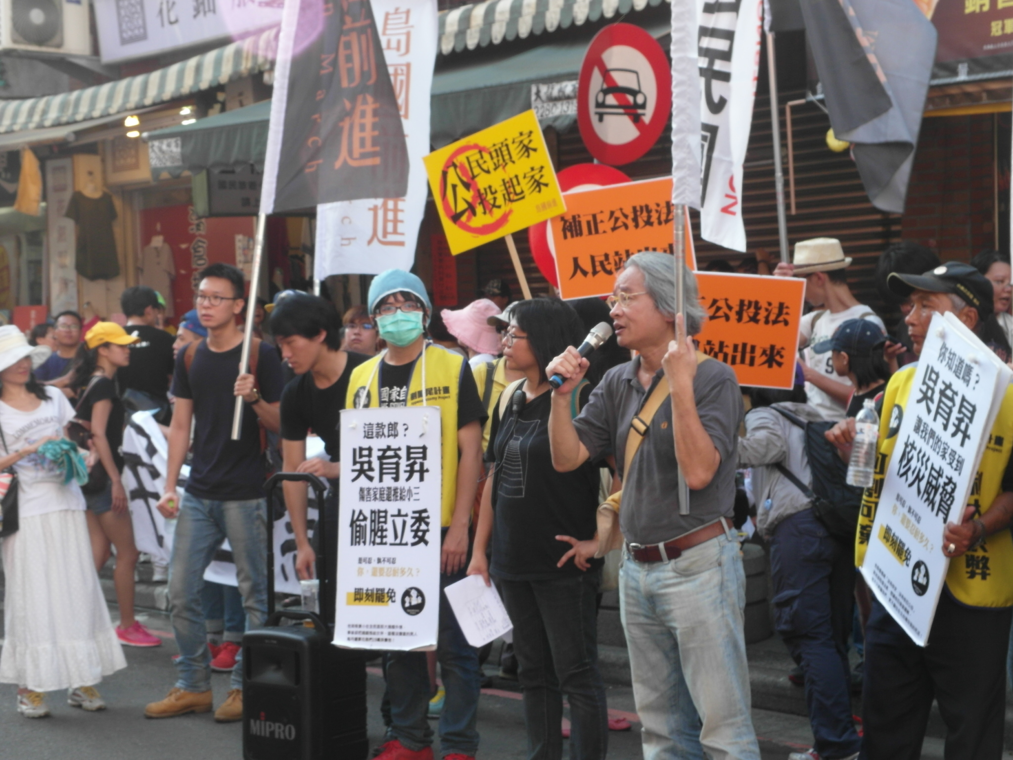 繼昨日內湖遊行,「島國前進」與「割闌尾(藍委)計畫」、「民主黑潮」等多個公民團體,今(13)日前進淡水老街,展開公投補正及罷免選區立委吳育昇的聯署行動,將近300人的遊行隊伍,一路浩浩蕩蕩走到吳育昇服務處演講時,踢館的反遇鬧場的,一位國民黨黨工突然現身,與現場民眾展開激烈論戰,遊行指揮之一的陳為廷,雖要求警方不要阻擋「公民與國民黨」的良性對話,但警方仍團團將黨工圍住,只好解嘲說,「現在他(指黨工)終於可以理解我們被警察包圍的痛苦了!」