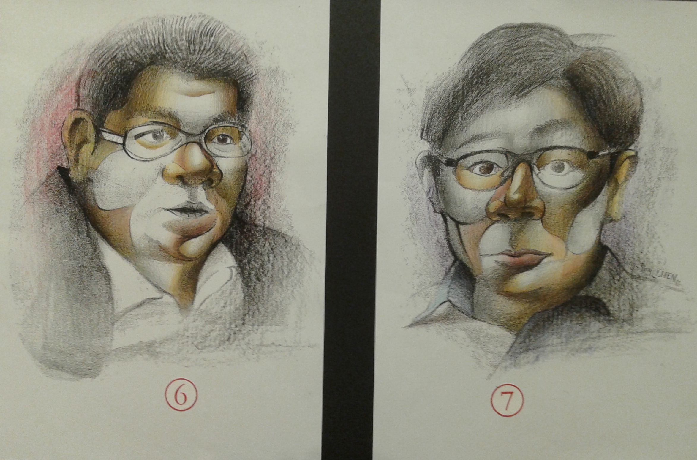 在政治人物畫像的作品中,還有王雅璇及陳亮廷的柯、連插畫也都獲得系上老師的評選佳作,兩人畫的連勝文都呈現富貴之家的福態模樣,而柯文哲則像是辛苦往上爬的平民百姓。