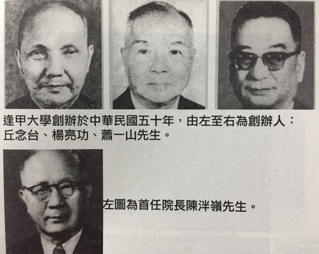 丘念台(圖左上)以父之名創辦逢甲大學(前身逢甲學院)已近一甲子了。