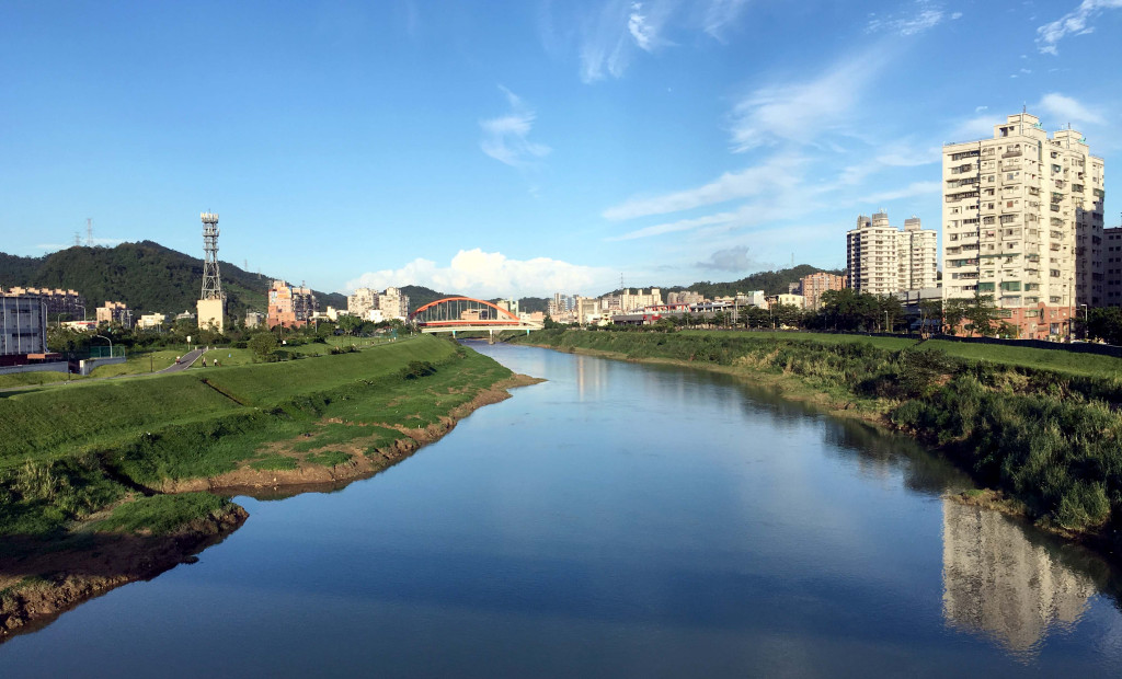 晴天的午后,基隆河面倒映藍天,十分美麗。記者蔡育豪攝影