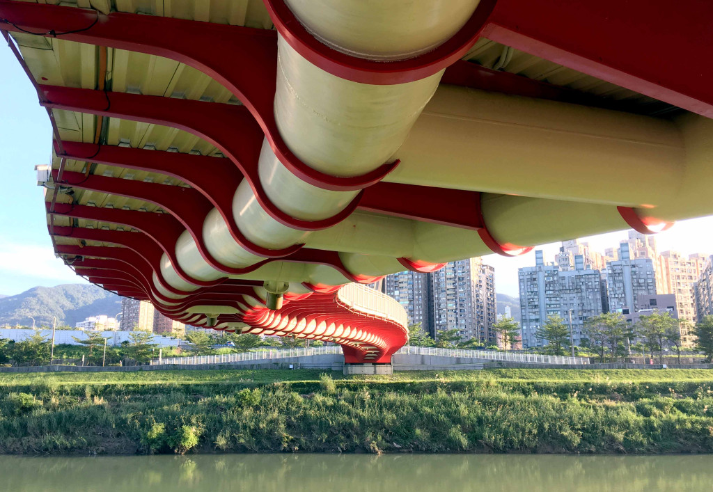 星光橋下可見魚骨造型的結構。記者蔡育豪攝影