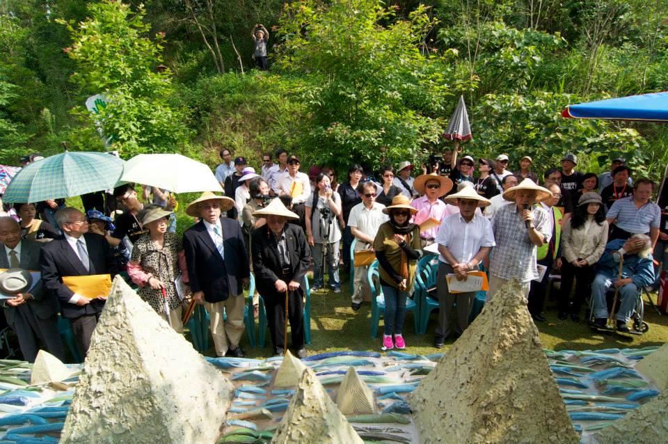 1970年2月8日,一群囚禁在台東泰源監獄的政治犯,為了台灣獨立的信念,發動監獄革命,但不幸起義失敗,江炳興、詹天增、鄭金河、陳良及謝東榮五位烈士陸續被捕,期間雖遭嚴刑拷打,始終不願供出任何名單,在同年5月30日遭槍決,為紀念其義行、感念其犧牲,在歷經44年的曲折過程後,「泰源紀念碑」終於在南投草屯台灣聖山落成。(右圖:民眾出席揭碑追思典禮踴躍,北高共出動了3輛遊覽車及小巴,共一百多人到場致哀。/黃謙賢攝影)