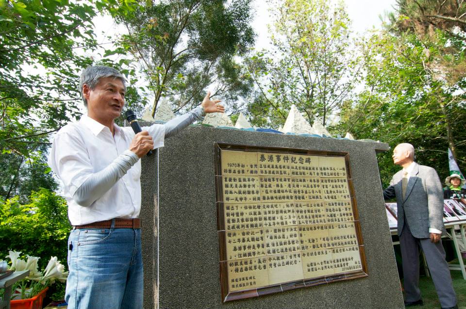 為紀念1970年發動泰源監獄起義而犧牲的五位烈士,昨(31)日「台灣政治受難者關懷協會」等於南投草屯「台灣聖山—生態教育園區」舉辦紀念碑揭碑典禮暨44週年紀念活動,碑文起草人中研院近代史副研究員陳儀深感慨地說,其實最理想的立碑地點是忠烈祠,應把舊的那些(祠位)換掉,另外處理,咱台灣「自己的國家自己救、自己的先烈自己拜」。
