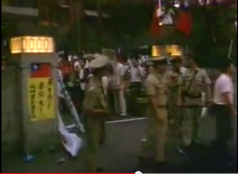 下圖為1987年的立法院大大門口,當時為612反共愛國陣線與民進黨人士的衝突事件。(本圖翻攝自youtube)
