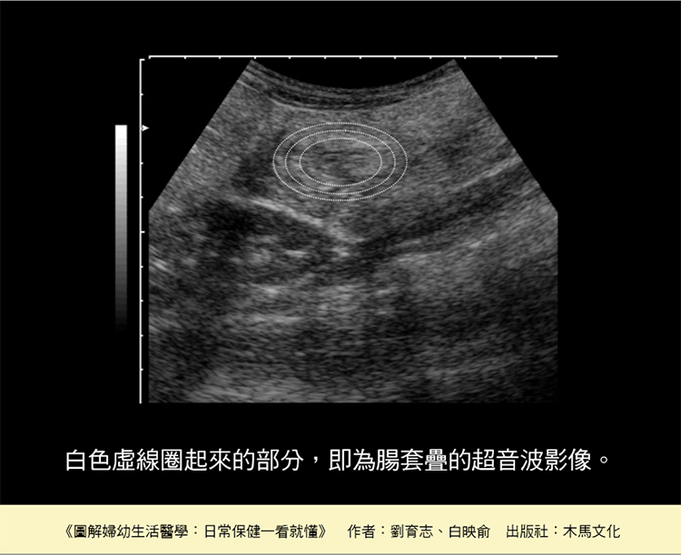 直覺有哪裡不對勁的軒媽決定將軒軒抱到兒科門診檢查。醫師在軒軒的肚子摸到一團腫塊,懷疑是腸套疊,便安排了超音波檢查。幸好有及時發現,才能靠著鋇劑灌腸將套疊住的腸子復位,順利化解了一場危機。