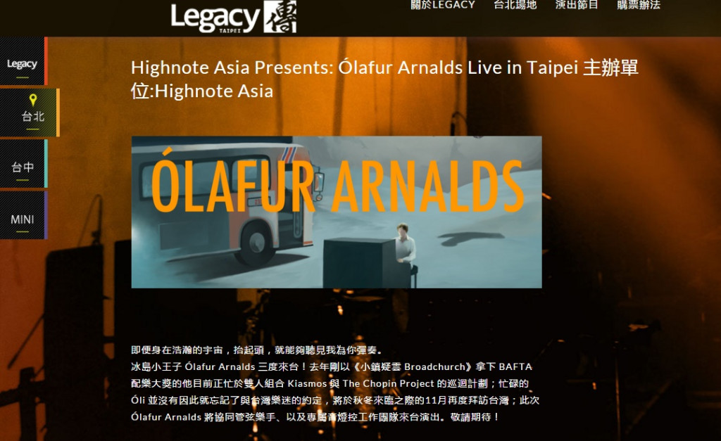 legacy內場演出的冰島藝人演出新音樂。(翻攝自legacy網頁)