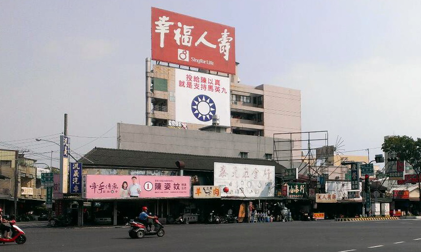 友愛北港路口幸福人壽的「國民黨徽看板」。(記者陳俊廷攝)