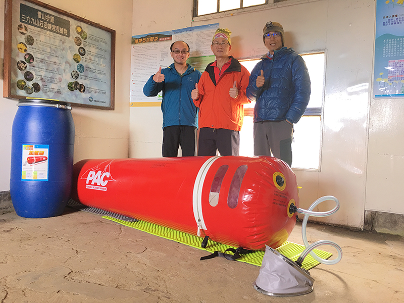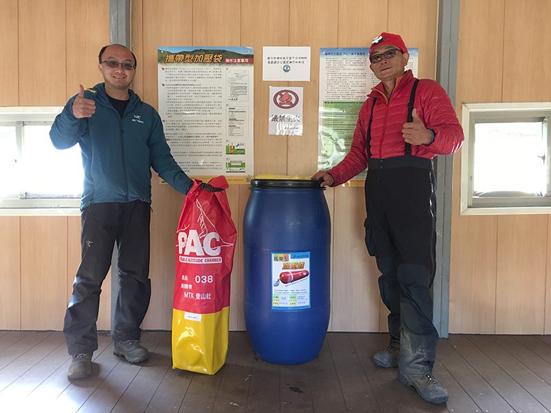 有鑒於嚴重高山病奪走許多登山者的生命,台灣野外地區緊急救護協會特別主辦攜帶型加壓袋(PAC)公益建置計畫,希望達到台灣高山病零死亡。該計畫主持人、台灣野外地區緊急救護協會副理事長、也是急救加護科醫師王士豪表示,PAC可以在短時間內,模擬下降海拔1,500公尺,如果高海拔肺水腫及高海拔腦水腫的病患,無法下撤,便可以利用PAC來爭取一線生機。