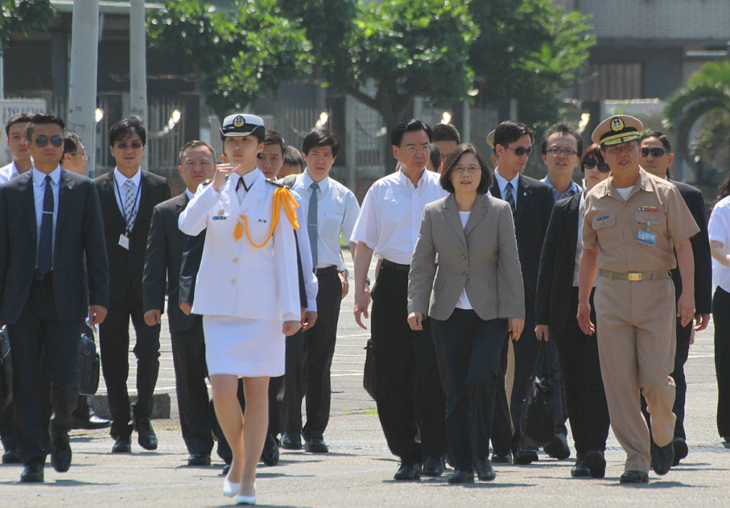 做為中華民國第一位女總統,蔡英文連續兩週週末都安排視察部隊,今(4)日上午更親臨海軍蘇澳中正軍港,還登上新銳戰艦「沱江號」,升起統帥旗解纜出海「短程巡弋」。海軍也依照傳統,以全套軍禮接待,向三軍統帥表達效忠之意。