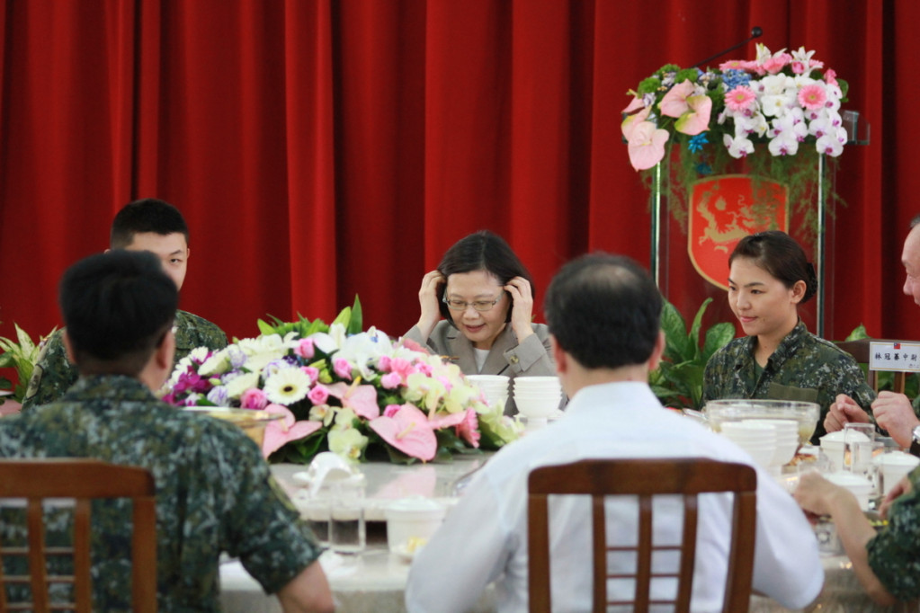 來到宜蘭視察部隊,蔡總統也一併視導153旅,與官兵共進午餐。繼上週日視察花蓮空軍佳山基地,本週六再看了海軍168艦隊與陸軍新訓旅,一週內陸海空軍一次看完,三軍輪流向新任統帥表達效忠,也讓二度執政的民進黨可以暫時放心軍方不忒之心。
