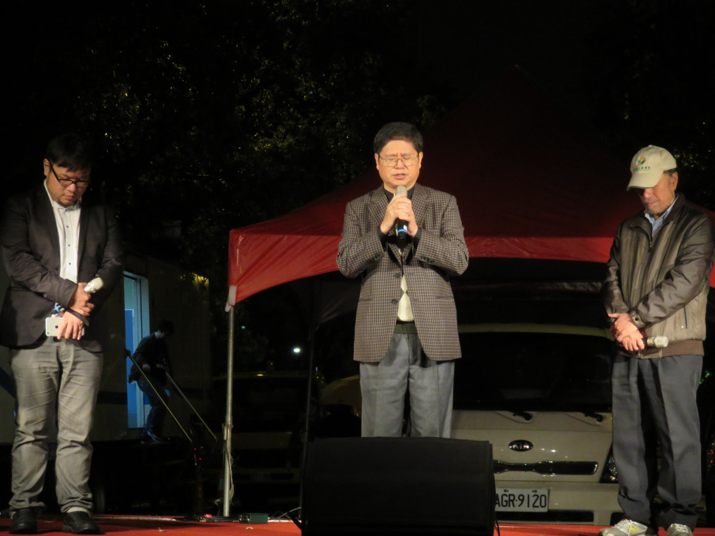 鄭國忠牧師帶領大家為323國家暴力受害者周榮宗老先生默哀