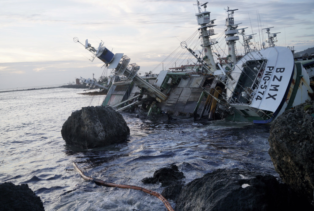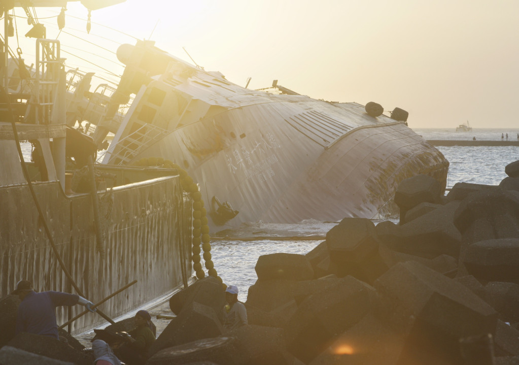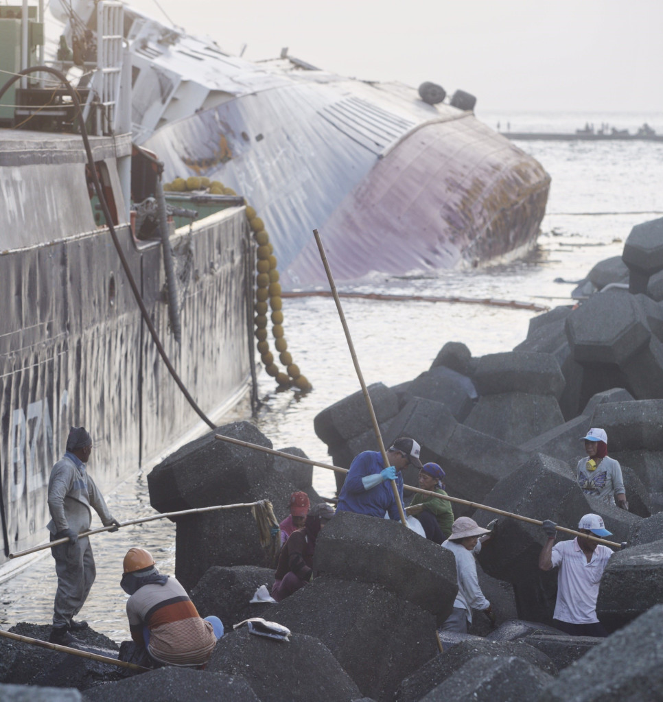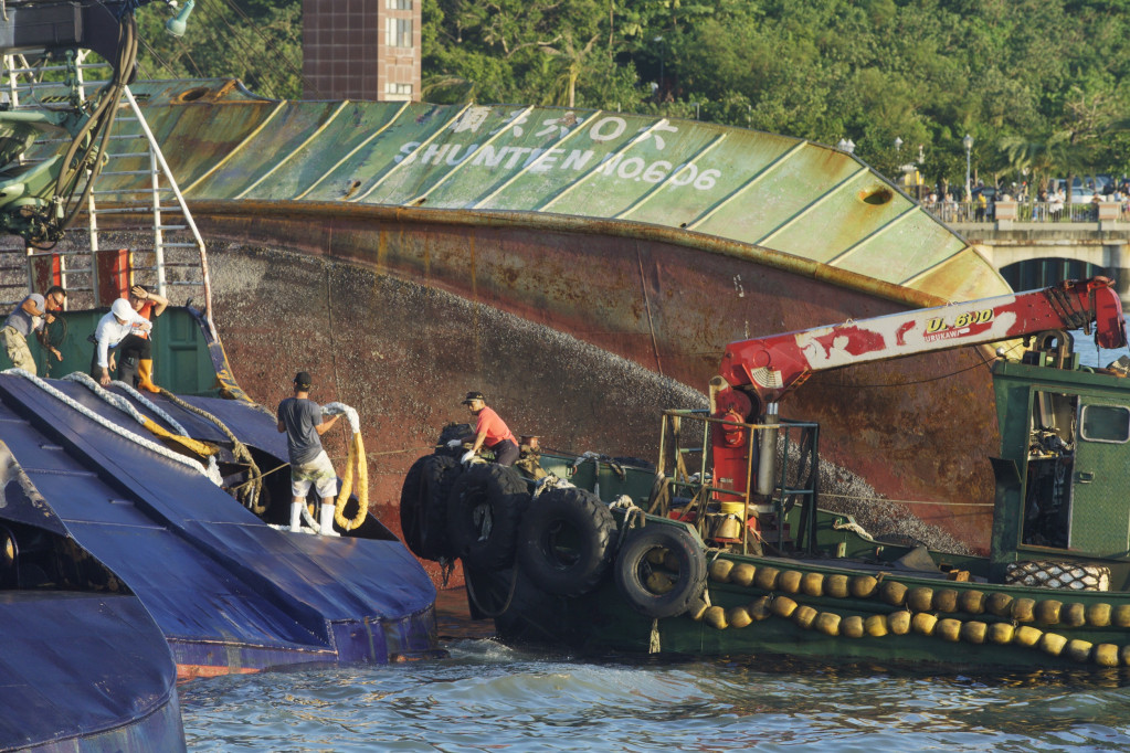 強颱莫蘭蒂橫掃南台灣,高雄港內漁船、貨輪頂不住強風導致纜繩斷裂,四艘船舶因此漂到西子灣旁擱淺,今(15)日甚至被發現開始漏油,當地漁民擔心油污會污染附近海岸生態,儘管環保署聲稱僅洩漏少量柴油,但現場重油味非常重,下午船公司也緊急派員前往攔油,藉由吸油棉、除油劑以及攔油索等方式,防止油污繼續擴散。