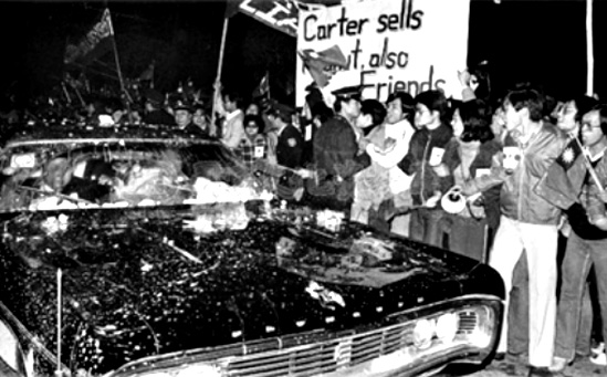 所以如果潑油漆卡嘸好,難道雞蛋卡好?下方的兩張相片比較一下。左圖是1978年12月美國卡特政府派來的代表團。在抵達台北松山軍用機場後,遭抗議的群眾和學生投擲雞蛋和石塊。事實上,當年戒嚴的台灣,人民根本沒有集會遊行的自由,這些人早該被捕了,但當場的警察不僅沒有阻止這種「不理性」的動作,反而還保護直接貼近代表團車隊的抗議人群。至於右圖,2014年的今天,即便言論自由和集會抗議是受憲法保障的權利,但警察的盾牌和插刀片的蛇籠卻被拿來對付我們自己的孩子。