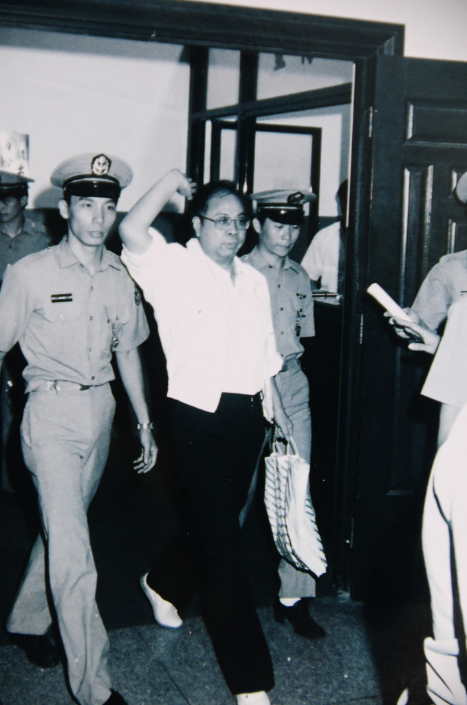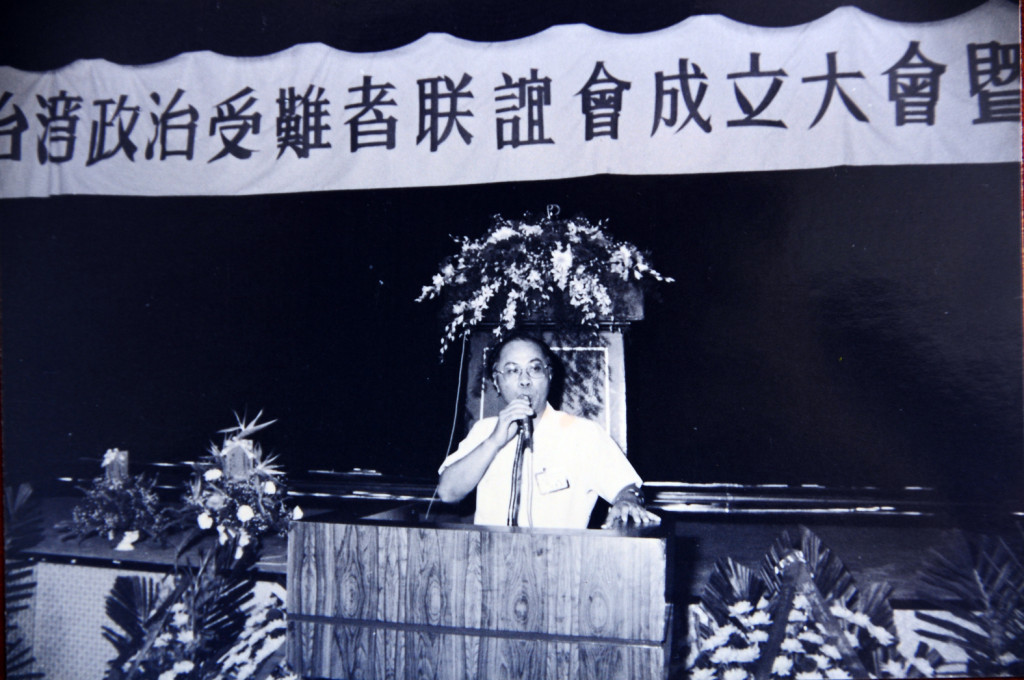 1988許曹德(圖左)在政治受難者聯誼會上提案將「台灣應該獨立」列入章程。