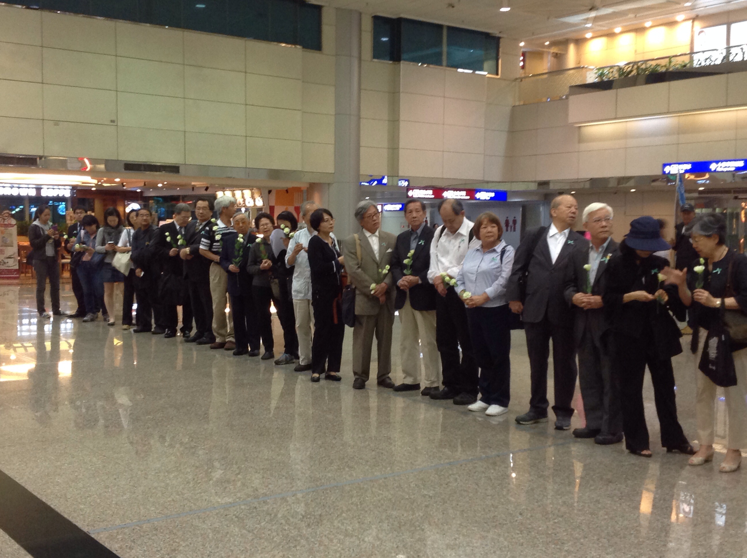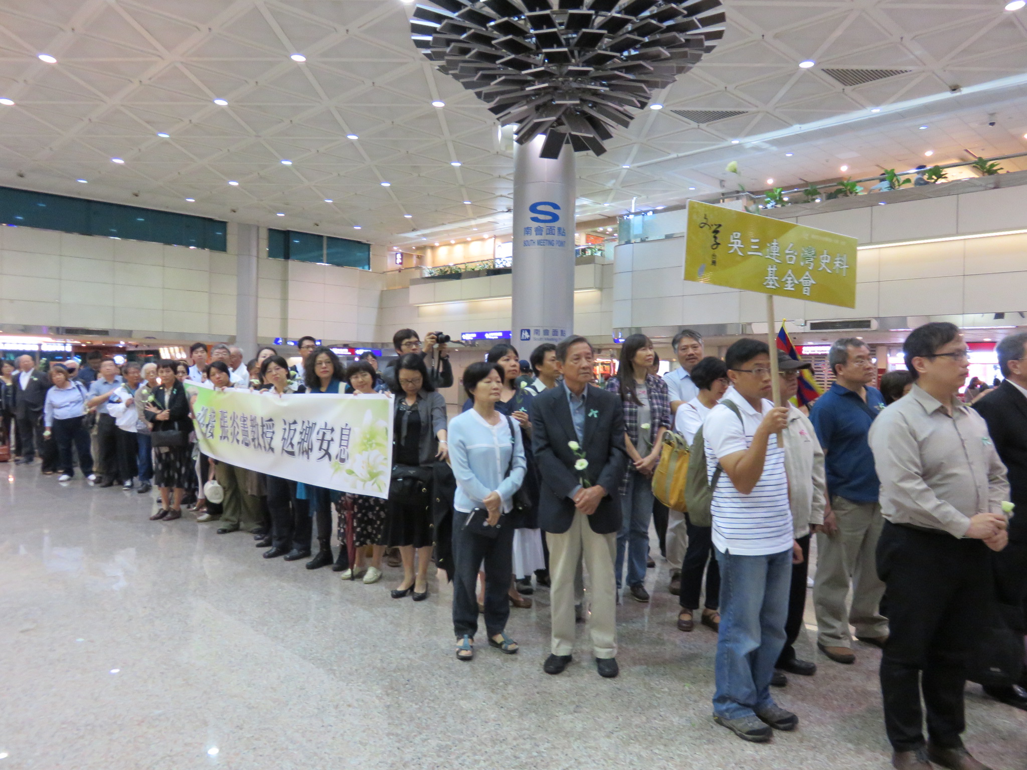 台教會歷任會長鄭欽仁、蔡丁貴、陳儀深、呂忠津、北社社長張葉森、客社社長黎登鑫、詩人李敏勇、坐著輪椅的田媽媽等人,與台灣國家聯盟、台北水噹噹姐妹聯盟、台教會、台灣社、北社、吳三連台灣史料基金會、台獨聯盟、228關懷總會、台灣聯合國協進會、台灣21世紀婦女協會、台灣心會、台灣之友會、台灣圖博之友會等社團好友,約200人前往桃園機場迎接他返鄉安息。張教授上車後,全體親友向他深深行三鞠躬禮…..