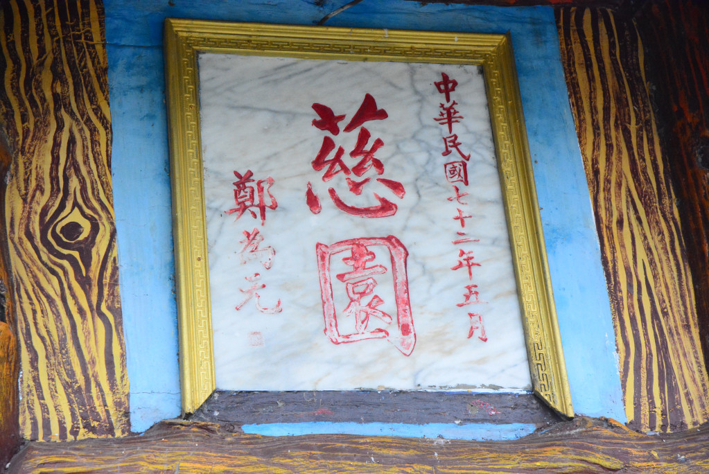 因為早年國軍將榮民安置於此,當地退輔會早年興建的建物或公園,仍存有「黨國」色彩,像是這塊公園內的水泥匾額「慈園」,落款是前國防部長鄭為元。時至今日,公園仍封閉,如同戒嚴般的囚禁著。圖/王志偉