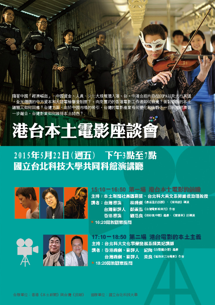 「港台本土電影座談會」時間:5月22日(五)下午3點至7點,地點:台北科技大學共同科館演講廳。