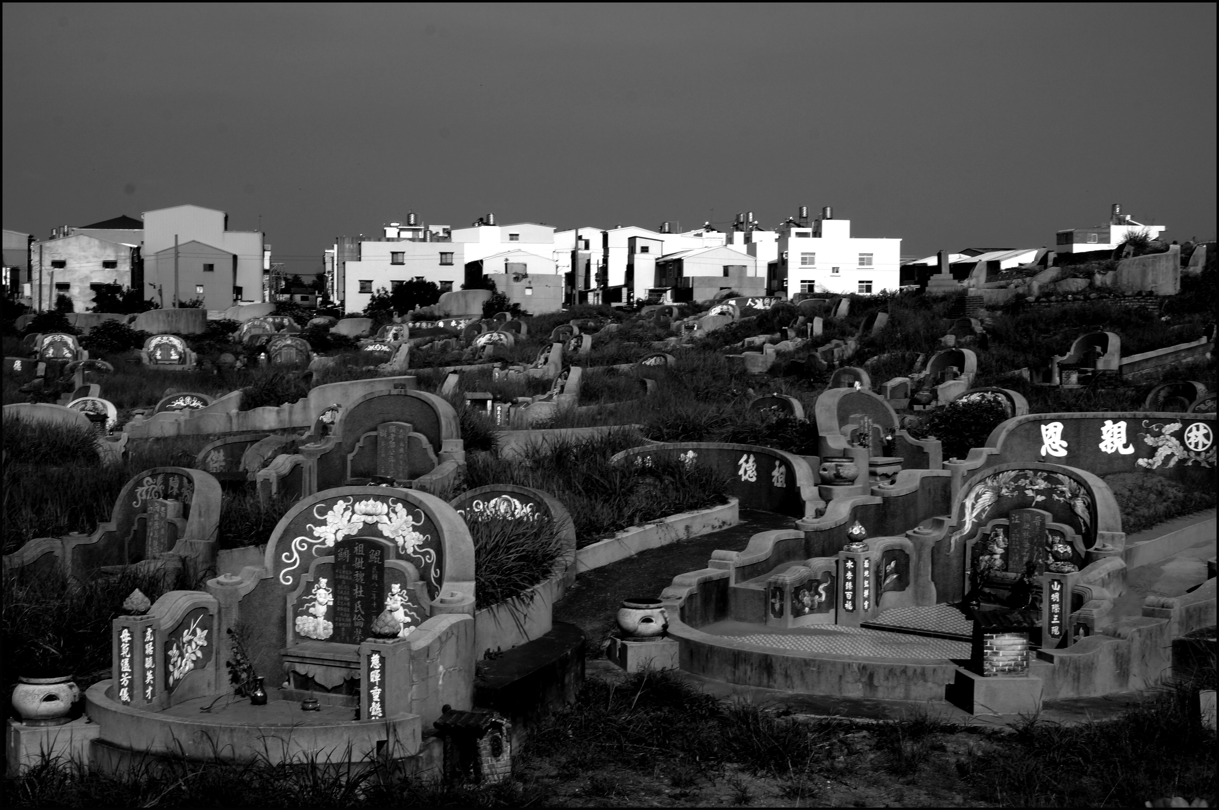 死後居所的大小和位置,展現後人的財力,每個先人無從選擇,在缺乏規畫下,最終的結果,就呈現這麼混亂,不規則的景像,也算是一種台灣奇觀吧?