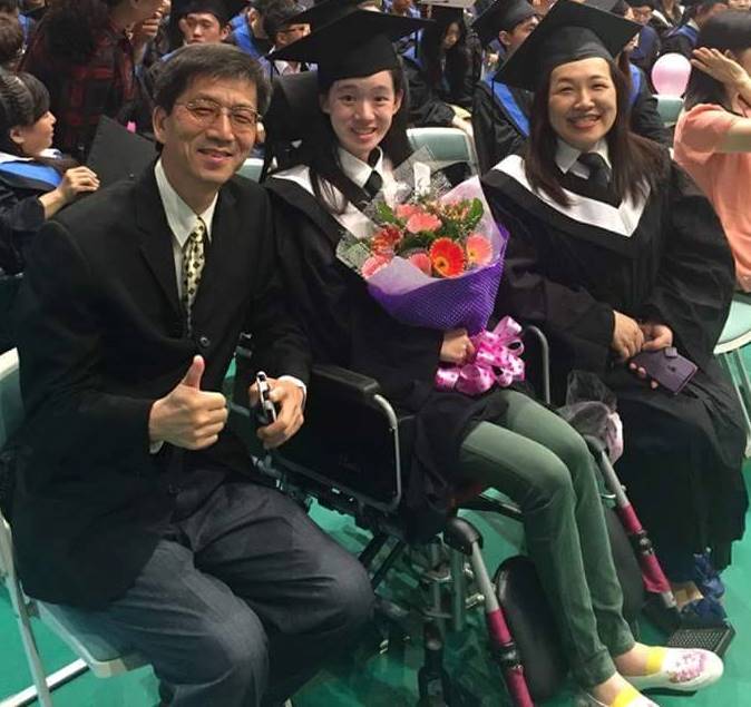 巫以欣和媽媽一起參加畢業典禮。(圖:罕見疾病基金會提供)