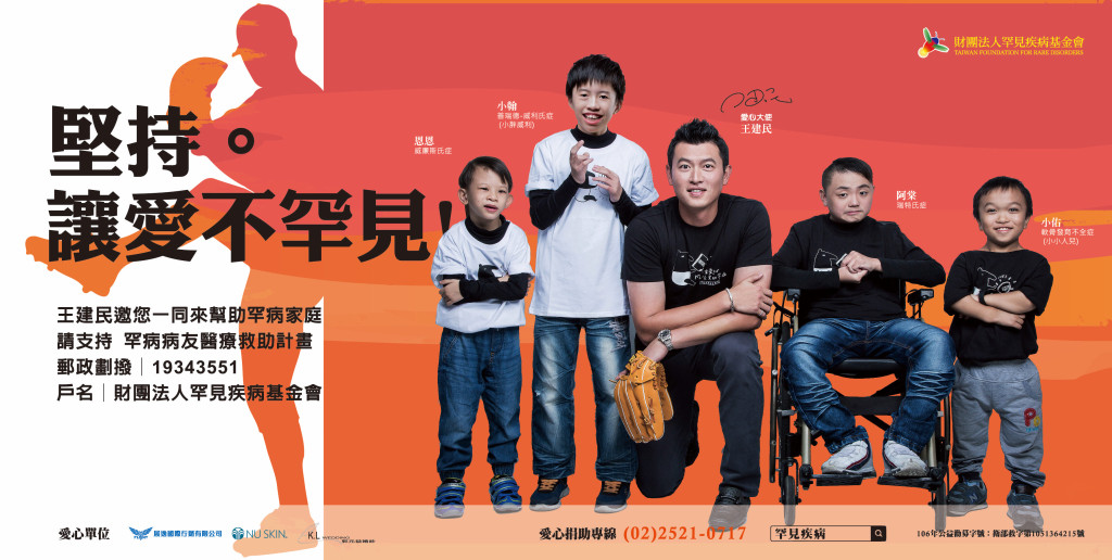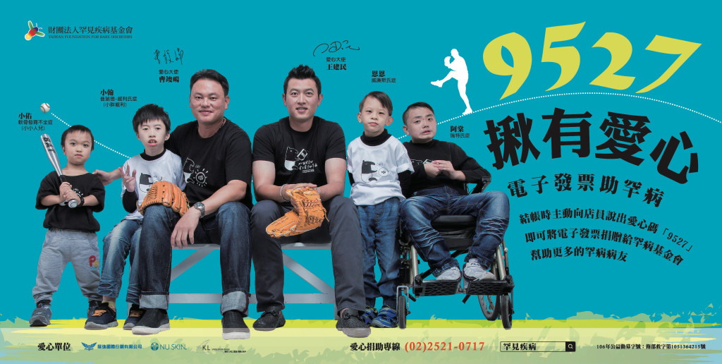 此次公益合作,讓王建民與曹竣崵對罕病的孩子們有更深的互動與了解。此外,小病友們雖然終身需要與病魔對抗但仍永遠展露動人笑容,反而讓他們得到了很多鼓舞。王建民與曹竣崵也在此特別呼籲:罕見疾病並不會傳染,期許社會大眾敞開心胸,共同來關心他們及支持他們,誠摯邀請各界朋友一起籌募『罕見疾病醫療照護基金』以及透過『9527愛心碼(揪有愛心)』為罕病朋友募集電子發票。自4月起,這一系列的宣導平面廣告,將在台北捷運燈箱、北中南公車車體與大家見面,還請所有支持罕見疾病的朋友們密切鎖定,給予罕病朋友們最真誠的支持與鼓勵。