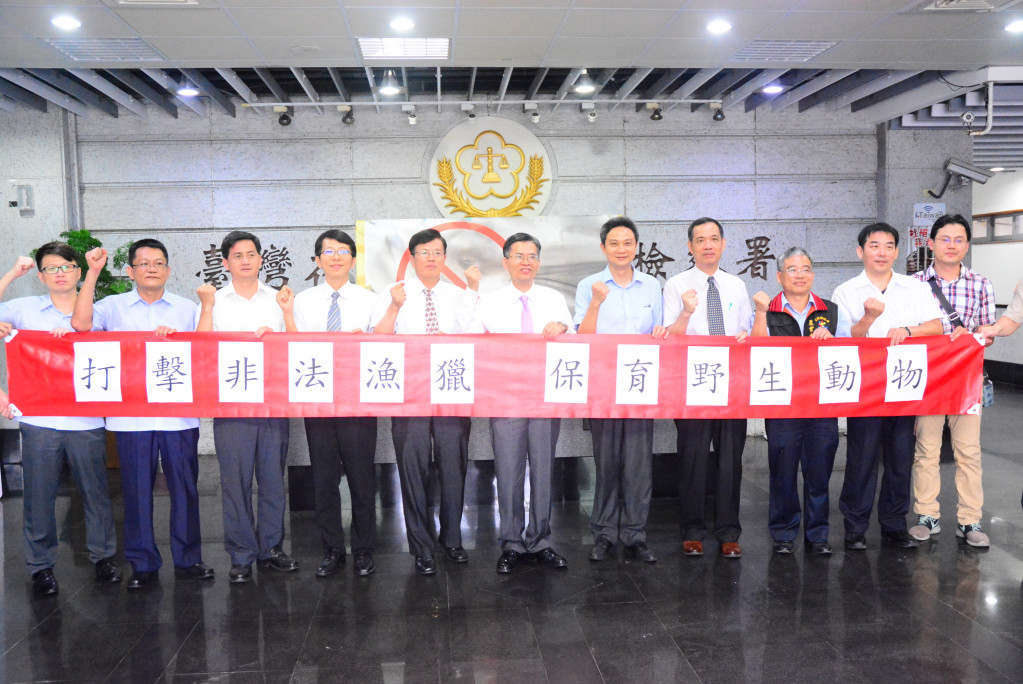 花蓮地檢署檢察長林錦村今天下午召開打擊非法漁獵、保育野生動物記者會,召集農業處、海巡單位、林區管理處、司法警察單位共同宣示,主任檢察官許建榮表示,近來珍貴海洋資源頻頻遭人破獲,捕殺保育類動物,檢方感到相當痛心,大家知道海洋魚類生存相當不易,也是全球共同守護資源,看見海豚遭濫殺、鯊魚鰭遭割下,身軀被丟棄,實在殘忍,因此檢方結合各單位決心打擊犯罪。