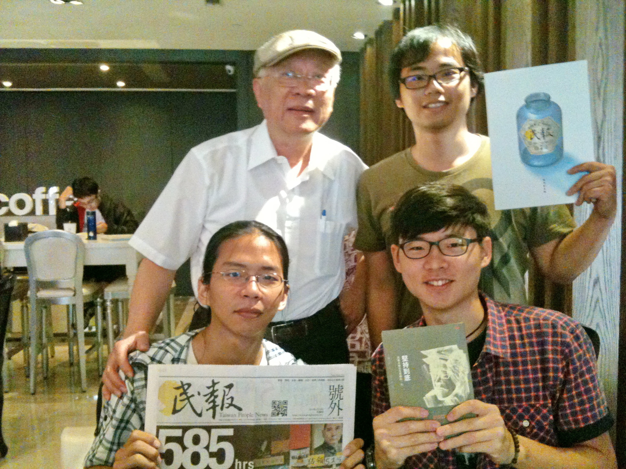 (上圖圖說:陳永興將民報發行的刊物與其出版尚未公佈的新書,欣喜地致贈給家鄉高雄學運新世代,鼓勵學生堅持到底/記者陳俊廷攝)