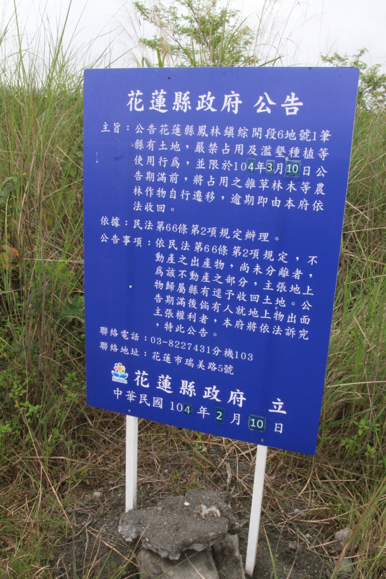 縣府表示,愛狗樂園預定地位於鳳林鎮綜開段六地號,開發面積1.7857公頃,為縣有土地,自日據時期即登記為國有土地,所有權人為花蓮港廳(地方行政單位),資料顯示民國二十七年(昭和十三年)所有權人登記為花蓮縣,民國三十五年申報書所有權人為中華民國,民國三十六年總登記所有權人為花蓮縣,該地原為河川區域內水利用地,民國九十四年編定為一般農業區農牧用地,所有權人仍為花蓮縣政府。