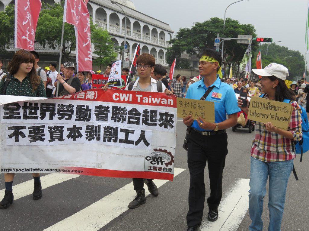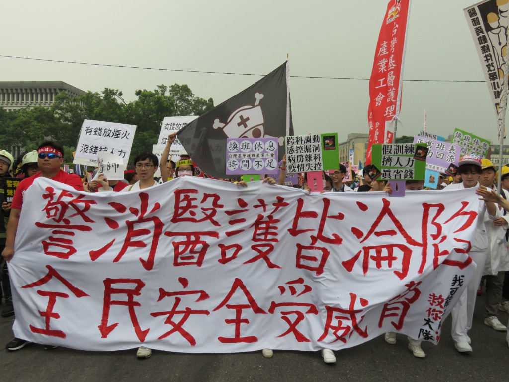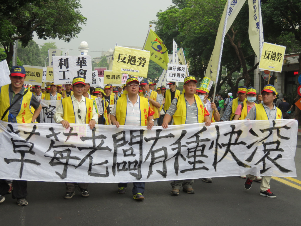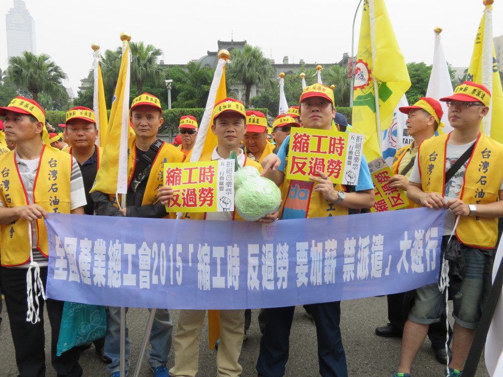 今天是五一勞動節,全國各工會、工運團體發起「2015五一遊行」,上萬名勞工下午在凱道集合,對著總統府投擲煙霧彈,抗議馬英九跛腳總統、看守政府,烏煙瘴氣的執政,齊聲怒喊「縮工時、反過勞、要加薪、禁派遣」,要讓馬英九聽見勞工的心聲。