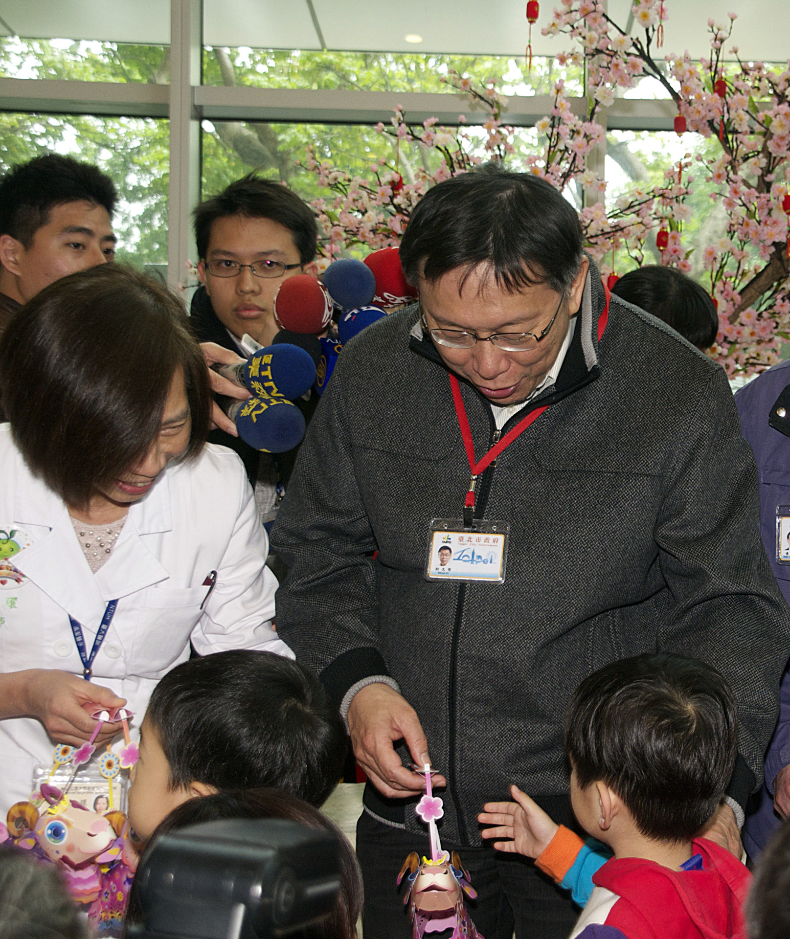 農曆正月15日即將到來的元宵節,提燈籠賞花燈仍是許多小朋友最期待的日子,但對於身體不適仍住院中的孩子們來說,卻無法到場感受元宵歡樂的氣氛。在元宵節前夕,臺北市市長柯文哲親臨臺大兒童醫院一同發送今年的『喜咩報喜』元宵燈籠,讓祝願小朋友與家長一同動手做立體紙雕燈籠,感受元宵節的歡樂與趣味。