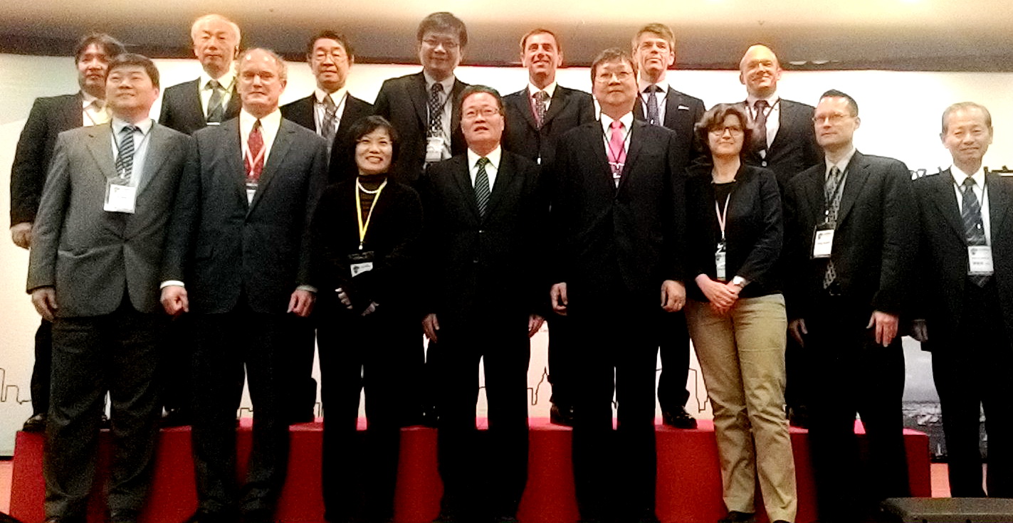 左三高市府顧問劉世芳、副市長陳金德與美國、日本、加拿大、法國、德國及台灣產官學代表出席「2015安全城市工業管線管理國際論壇」(記者陳俊廷攝)