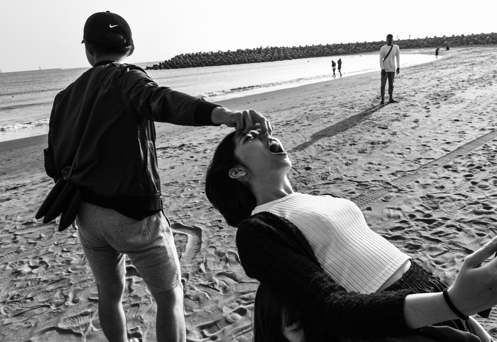 「網路照片不是這樣啦!」年輕情侶在台南漁光島商討韓版《Follow me to》照片拍攝法,極盡折騰能事。女主角下腰友人在後支撐,男主角以兩指勾住鼻孔,作足痛苦表情。拖行幾步隨即倒成一團,不以為意,紀錄另類情侶照,開懷大笑。