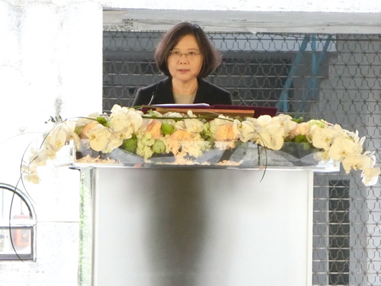 蔡英文在致詞時表示,景美人權文化區戒嚴時期是警備總部軍法處所在地,也是羈押政治犯的看守所,當時在這所監牢裡,很多人冒著風險,把台灣正在發生的政治迫害,傳到國際上,對當時的政府造成不小的壓力。她特別指出在座的謝聰敏就是其中之一,他曾經被關在這裡,透過牆壁的縫隙傳遞紙條,將政治犯的消息轉給家屬和國際媒體,這是那個年代最有名的事蹟之一。