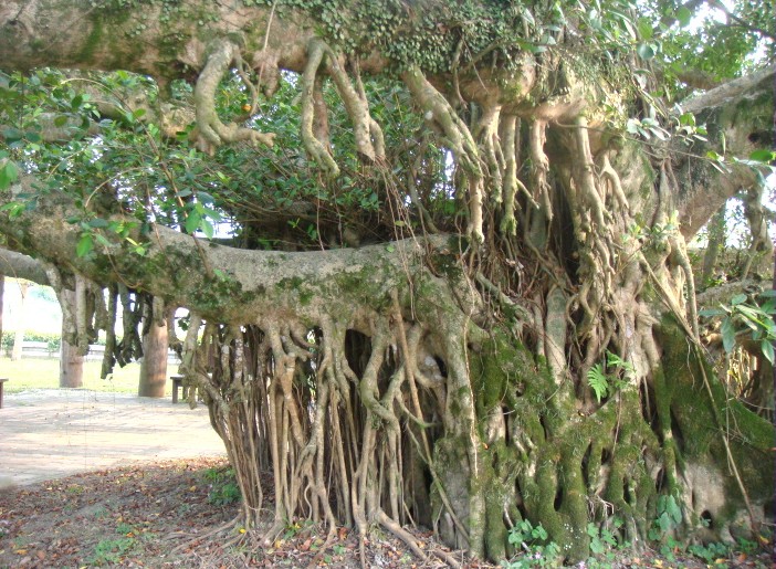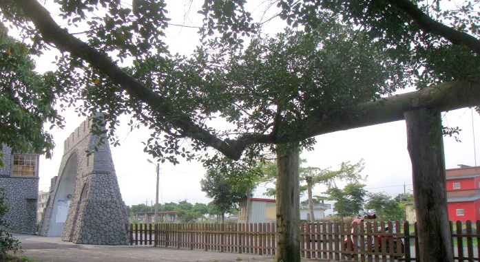 由台七丙公路向三星街進發,過了宜蘭監獄,可見到托兒所就是仿照的槍櫃城。這裡有一棵百餘年的老榕,盤鬚糾結,樹型奇異,遠遠觀賞,有似雙鶴相含,龍虎相埒之形,据說當地居民視之為神木,樹根可以治病,旁建有土地公廟。