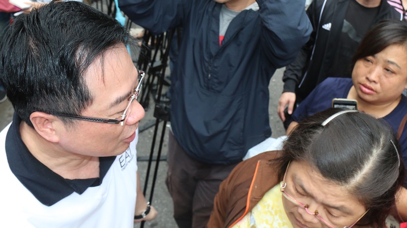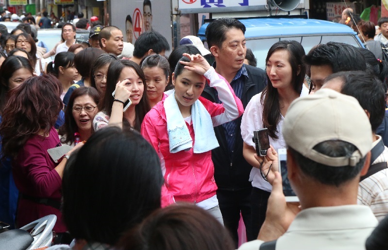 拋頭露面到市場拜票,免不了會遇到嗆聲的民眾,圖右下角的婦人就在蔡依珊附近開罵:「三代公務員,身家幾百億」,最後是由連勝文總部總幹事蔡正元出面將她擋在外面。