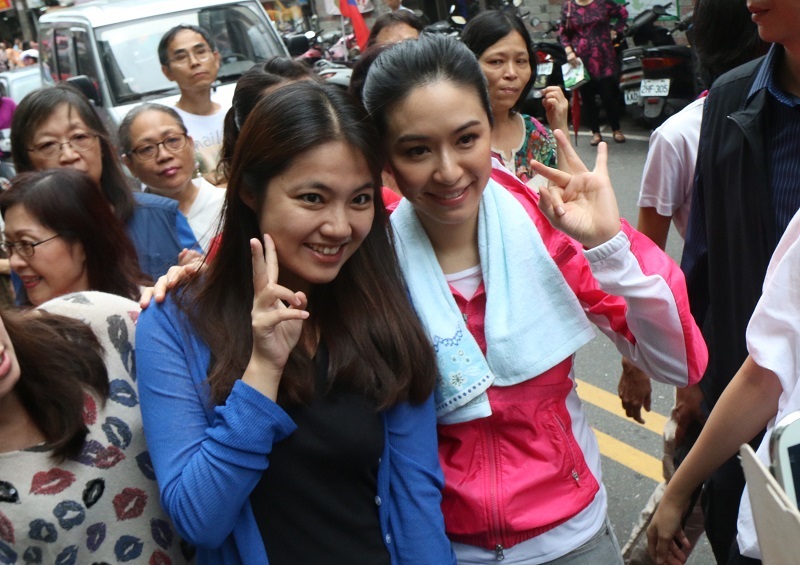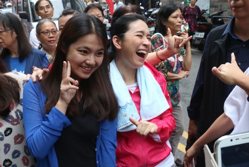 不過穿了桃紅色外套、紮著馬尾的蔡依珊,依舊很討人喜歡,許多民眾知道是她到場,還特別衝進人群中要與她握手合照,而蔡依珊也來者不拒,凡握手必伸出雙手緊握,凡拍照必帶笑容,不小心比錯號碼手勢,還尷尬地哈哈大笑。