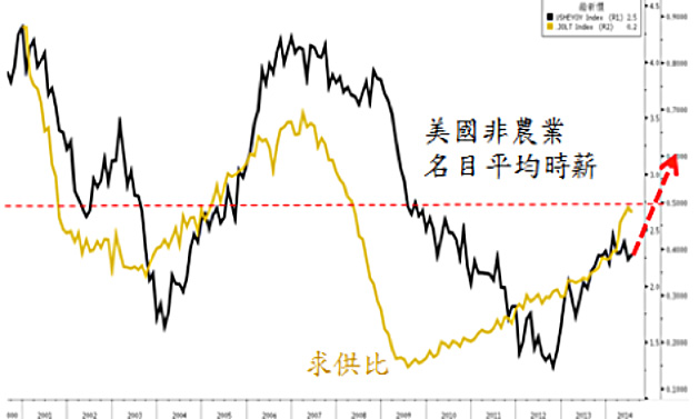 勞動需求將拉升工資成長。(資料來源:Bloomberg)