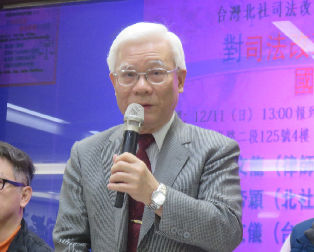 他認為司改最重要有二點,一是採行陪審團制度,若採行陪審制,其他的配套也會跟著改,可解決貪污、司法鬥爭及恐龍法官等問題,「不然會爛下去」,但目前只做到參審制,越南這六、七十年來就實施參審,「台灣的司法是全世界最兩光的」,是中國國民黨帶來的中世紀審判,這次司改若沒有納入陪審制,成功有限,陪審制若做起來,「就先給小英50分」。