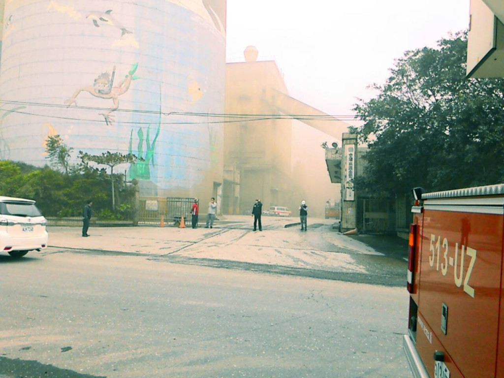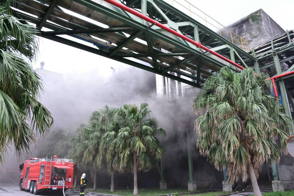 台灣水泥公司花蓮廠今天突然發生鍋爐爆炸意外,火勢在廠房內悶燒,濃煙伴隨陣陣惡臭不斷竄出。(記者王志偉攝)