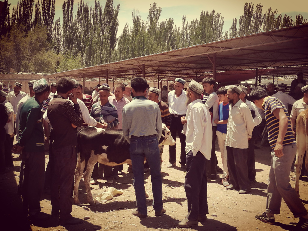喀什巴扎裡的牛羊交易市集。