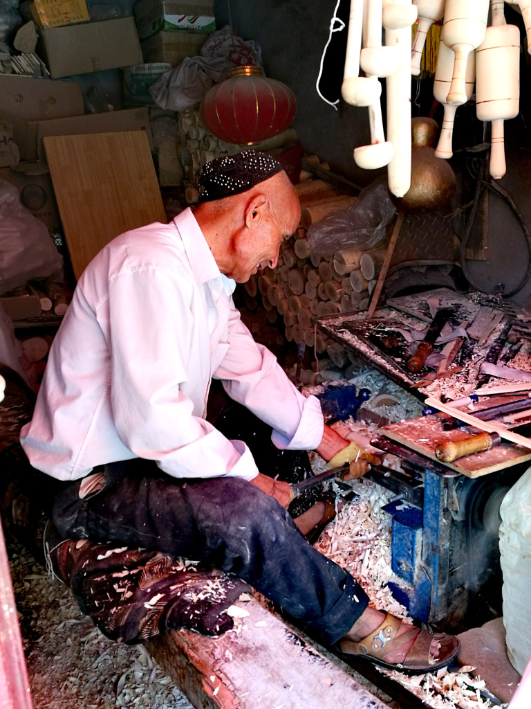 喀什高台民居裡的木匠。