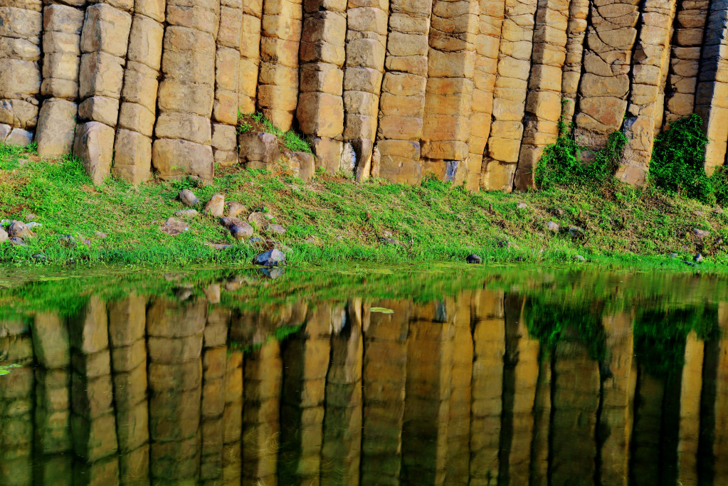 日治時期為了解決西嶼跟馬公間的海上交通,決定在大菓葉闢建碼頭,填海造港時,這片沈睡千年的柱狀玄武岩才意外露臉。 攝於---澎湖西嶼大果葉玄武岩(1) 澎湖西嶼池西玄武岩(2)