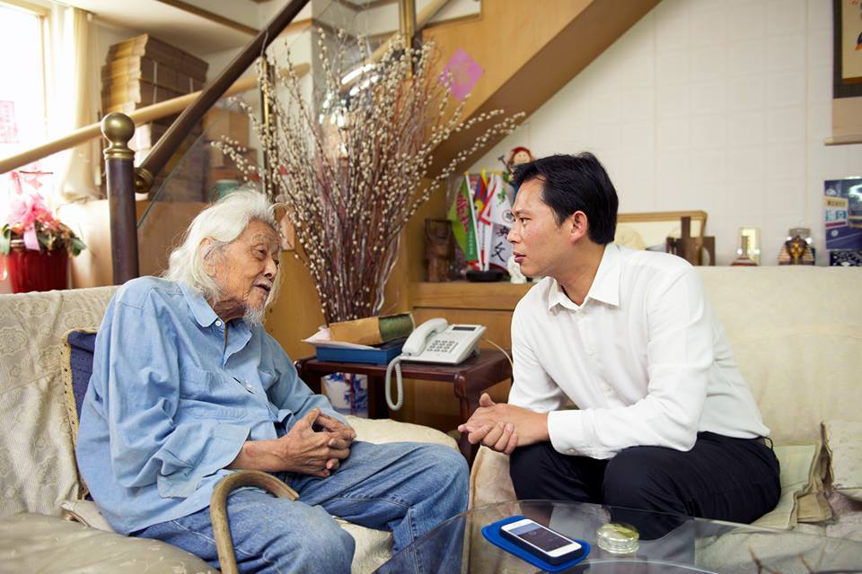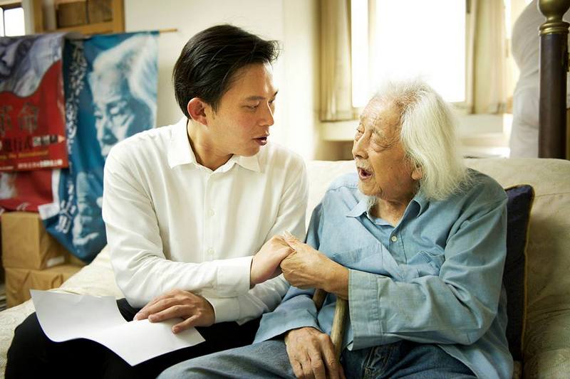史明向黃國昌說,「現在是你們的時代了,我們已經老了,一切拜託你們了」。(黃謙賢攝)