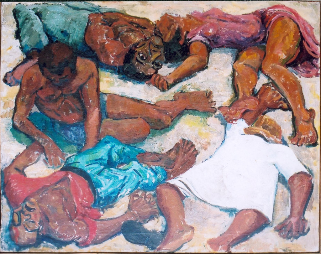 這幅畫描繪1960年的沙佩維爾種族屠殺事件,該事件有69人罹難,180多人受傷。圖/Wiki, Godfrey Rubens, CC BY-SA 3.0
