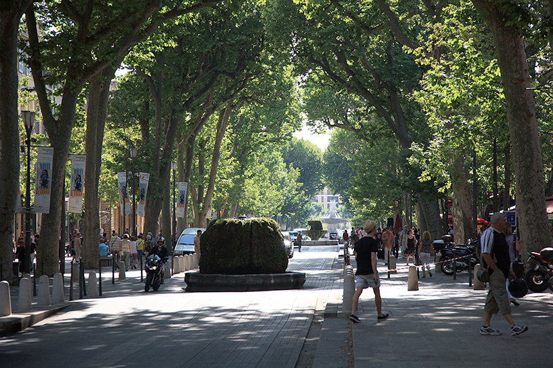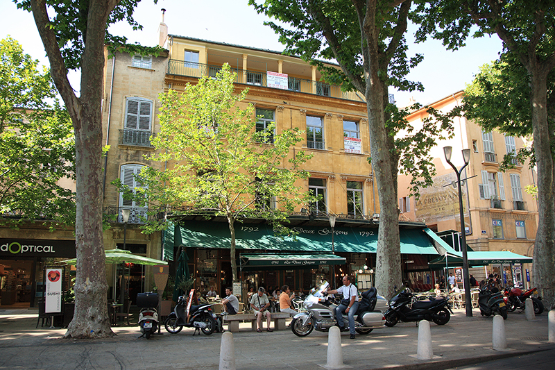 綠蔭遮天、噴泉水聲,少婦望著旋轉木馬上的孩子微笑,路人三三兩兩坐在露天咖啡桌,這裡是法國的艾克斯普羅旺斯(Aix en Provence),簡稱艾克斯。歷史上它曾是普羅旺斯地區的首府,今日隆河河口省(Bouches-du-Rhône)的一個城市,同時也是印象派大師塞尚(Paul Cezanne)的故鄉。城裡除了他的故居不時吸引各地的旅行者前來參觀外,他生前流連的咖啡館,同樣吸引許多人拜訪。