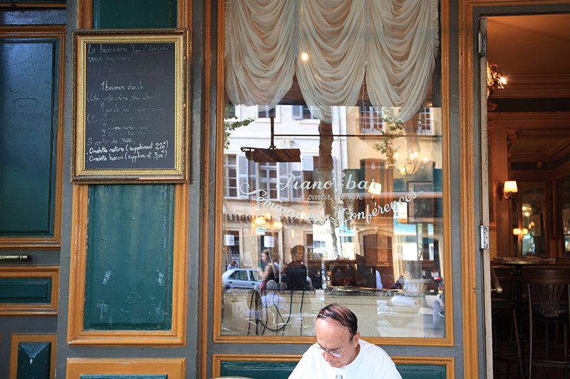 我經過路口的旋轉木馬,一路散步到雙侍咖啡館(Les Deux Garçons),這間百年咖啡店1792年由兩位侍者起家,店就開在城裡最美麗的米哈博林蔭大道(Cour Mirabeau)上。趁著侍者送上咖啡前的空檔,我閒晃店內仔細端詳,富麗堂皇的裝潢看不出這裡曾發生過祝融。帝國時代風格的裝潢以金、綠兩色為主,細節讓人目不暇給。除了畫家塞尚和同時期的法國作家左拉,法國最令人懷念的已故香頌名伶琵雅芙(Edith Piaf)也來過店裡,《玫瑰人生》的呢喃似乎仍在迴盪。