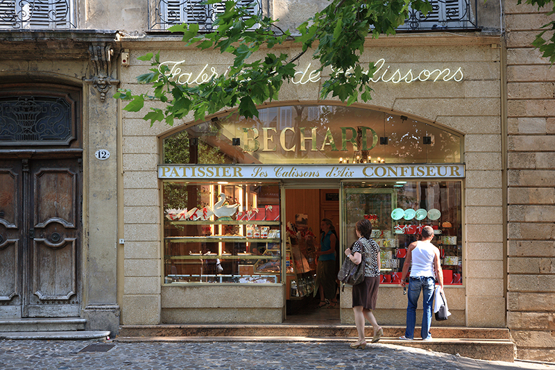 喝完咖啡,我走去斜對面門牌12號的知名糕餅店Béchard,在這裡可以買到當地特有的名物「卡力松杏仁餅」(calissons)。為了這一小塊菱形的小甜餅,英國作家彼得.梅爾還曾在文章裡特別著墨:「義大利人有卡里松內餅(calisone),希臘人有卡里重尼亞餅(kalitsounia)。可是任何一位普羅旺斯人都會跟你說,在各種杏仁餅當中,最出名的首推卡力松餅,而唯一正宗的卡里松杏仁餅就在艾克斯。」