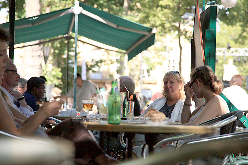 綠牆、綠棚、綠椅子,咖啡館的外觀和樹影相互應。坐在門前的露天座喝著卡布奇諾,我和鄰桌端著茴香酒的陌生人一起安靜望著被綠蔭染色的米哈博林蔭大道。它是這座城市的焦點和門面,17世紀建立至今,馬路從知名的獅子噴泉那頭開始,在另一頭的雷恩國王噴泉結束,兩側百年老宅櫛比鱗次,整條路上的法國梧桐樹取代了陽傘,成了人們夏日午後休憩的良伴。