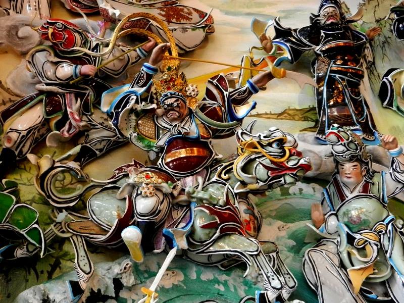 陳三火在豐原慈濟宮製作的剪黏。(攝影/蔡宏明)
