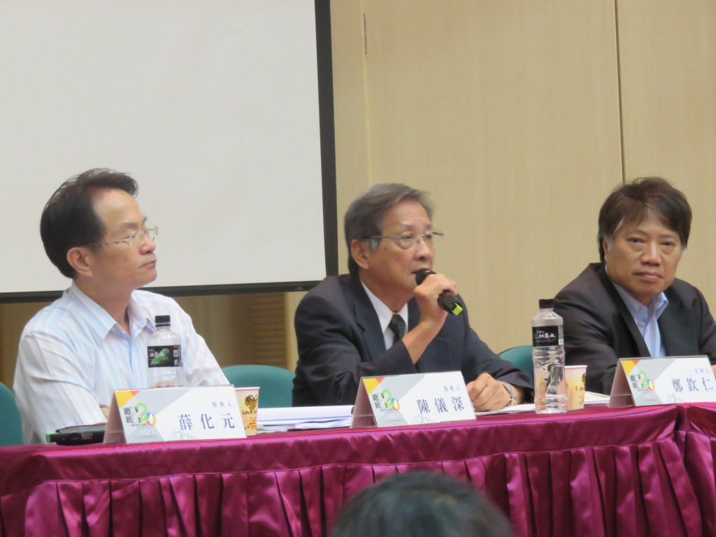 下圖:學者鄭欽仁(右二)提及當年康寧祥在國統會中力擋「國統綱領」往事。圖/唐詩