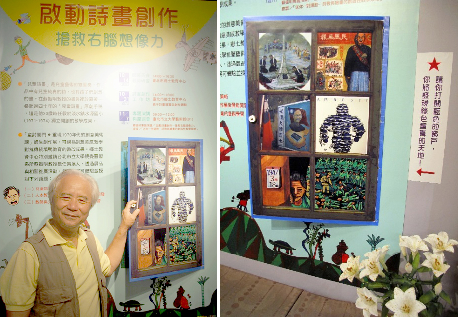 20歲開始當小學老師的蘇振明,他說:「我無法修改黨國教科書,也無法反課綱,在教室內,我以我的教師權,用藝術、想像、創造、思考,翻轉黨國教育,啟發兒童自主思考,釋放右腦的想像力和美感原動力」。